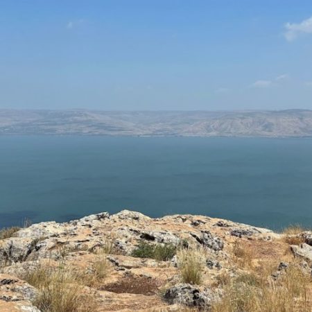 Around midday, our group hiked down a section of Mount Arbel. Mount Arbel is a high-cliffed mountain that stands prominently next to the Sea of Galilee; while the mountain is only about 600 ft. above sea level, the mountain is about 1250 ft. above the Sea of Galilee. Mount Arbel could have been the mountain in Galilee at which Jesus met with his disciples after his resurrection and gave them the Great Commission; the panoramic view of the mountain would have appropriately paralleled a view of the gospel going out to all the world (Mt 28:16-20). A hiking trail leads down to a section of rock climbing (using only hand grips and cords!) before resuming into a downward-sloping walk.
