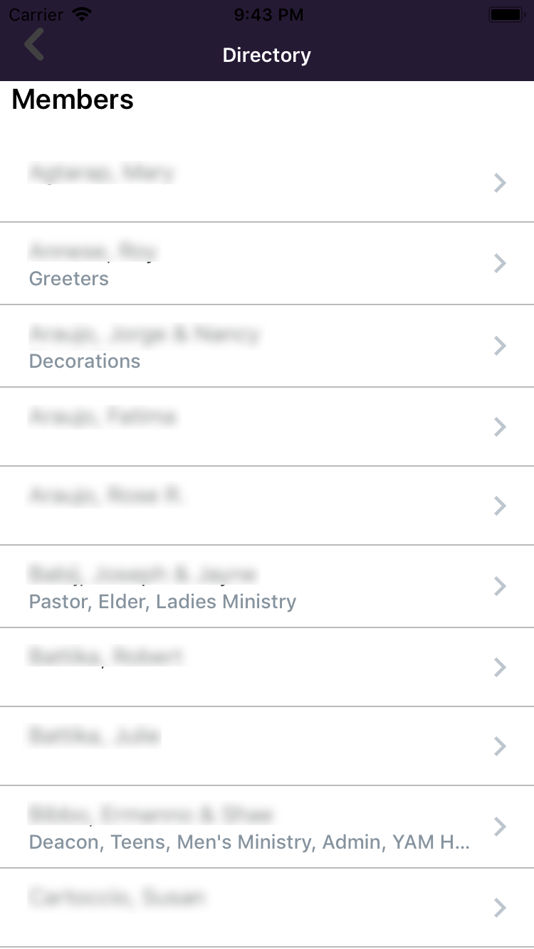 - Church Directory (Accessible by Members Only)